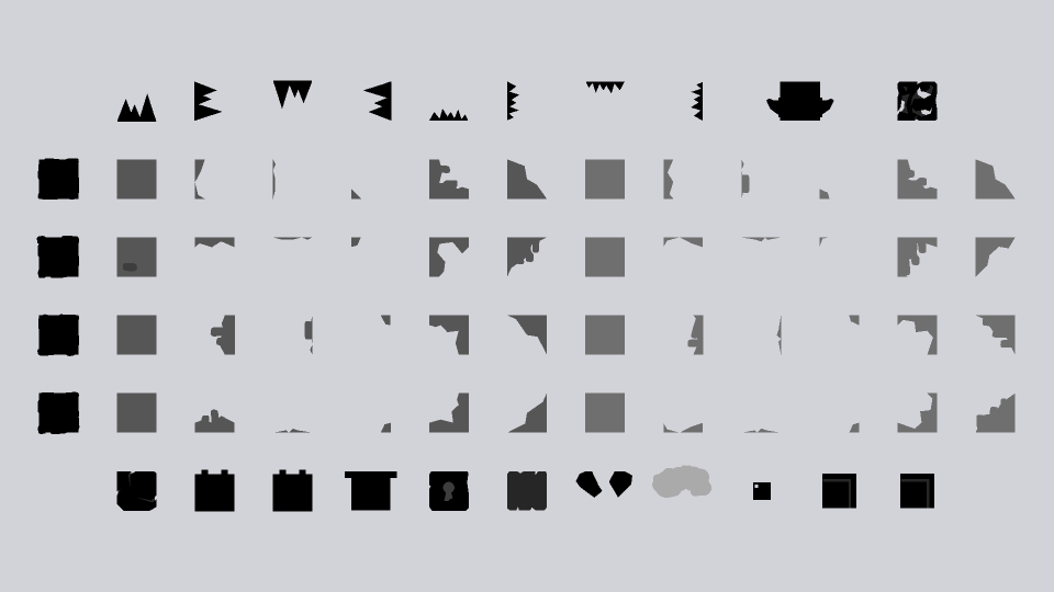 Here is an example tileset taken from the game, ("The End" downward secret area tileset):
